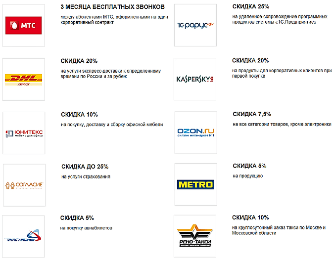 Подробнее обо всех специальных предложениях и скидках, предоставляемых партнёрами программы MasterCard Бизнес-Бонус, смотрите на официальной странице Программы.